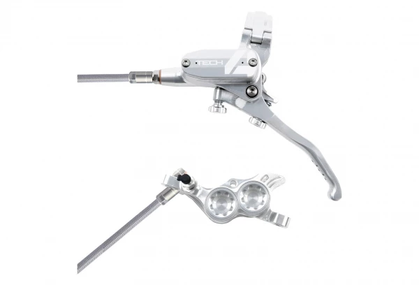Le tout nouveau Tech 4 E4 s’appuie sur notre expérience de plus de 25 ans dans la conception et la fabrication de systèmes de freinage hydrauliques. Le Tech 4 utilise une toute nouvelle étanchéité interne pour réduire la friction et le pivot tourne sur des roulements à rouleaux, ce qui permet de réduire la raideur du ressort. Le taux de ressort inférieur donne à son tour une action de levier plus légère, réduisant la fatigue du pilote et conservant notre sensation et notre modulation légendaires. L’étrier E4 mis à jour utilise des pistons en acier inoxydable de style hybride avec un insert phénolique permettant un mouvement plus fluide et moins d’entretien, tout en étant capable de gérer des températures élevées sans transfert de chaleur lors d’une utilisation extrême.