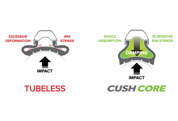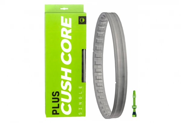 Le CushCore Plus est un système de mousse regroupant tous les avantages du performance et PRO, mais optimisés pour les pneus de taille plus et les jantes plus larges. permettant de minimiser les risques de crevaisons par pincement, il est composé d’une mousse à faible densité légère et résistante dans la durée. Cette mousse se monte sur la jante et divise le volume interne par deux, il est toujours possible et conseillé d’utiliser du liquide préventif pour d’éventuelles crevaisons par perforations.