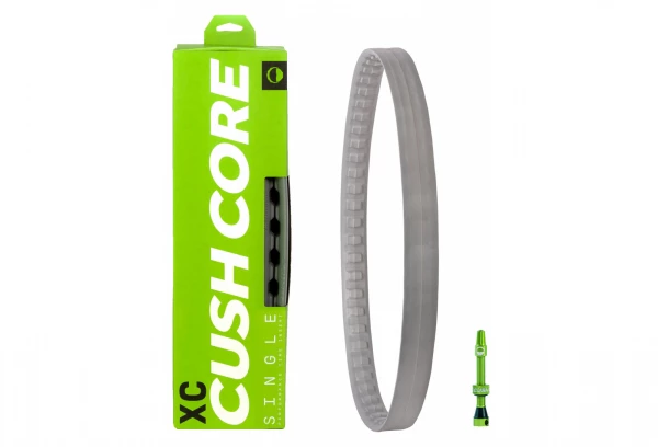 Le CushCore XC est un système de mousse »Version légère » conçue pour les courses de cross-country, le trail léger et / ou les coureurs moins agressifs, permettant de minimiser les risques de crevaisons par pincement, il est composé d’une mousse à faible densité légère et résistante dans la durée. Cette mousse se monte sur la jante et divise le volume interne par deux, il est toujours possible et conseillé d’utiliser du liquide préventif pour d’éventuelles crevaisons par perforations.