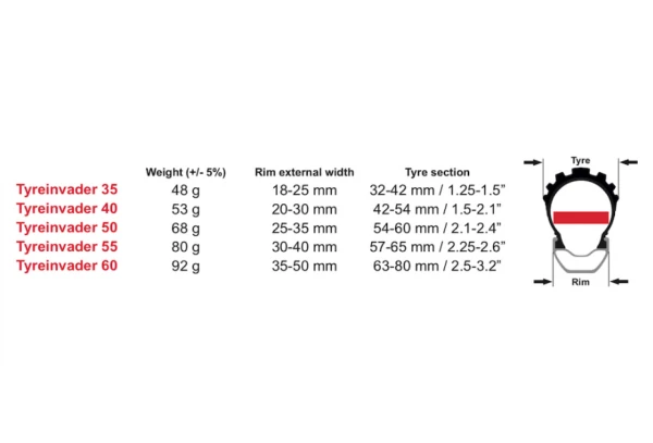 Tyreinvader est un insert anti-pincement pour pneus tubeless. Léger et très facile à utiliser, il protège les jantes et les pneus en cas de chocs violents sans perturber les sensations de pilotage.