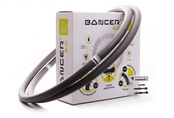Banger réduit le volume d’air à l’intérieur du pneu de 95 %, ce qui porte l’ensemble roue de tous les VTT à un niveau de 2,0. Les impacts sont amortis, les vibrations réduites et la sensation et la stabilité augmentées de manière significative. Il suffit de quelques mètres avec le Banger 2.0 en place pour que votre vélo révèle un caractère totalement nouveau. Grâce à sa techno composite super-légère et à son élasticité, il garantira des sensations de douceur, de vitesse et de sécurité. Banger 2.0 est également un incroyable système de prévention des crevaisons et réduit le risque de perforations ou de coupures du pneu de 90 %.Les chocs sont absorbés, les vibrations sont réduites et la sensation de stabilité augmente nettement.