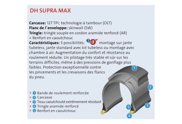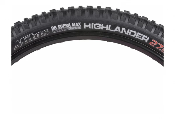 Le pneu Mitas Highlander convient parfaitement aux terrains secs et accidentés. La conception optimale de la bande de roulement permet non seulement de piloter sur des terrains difficiles, mais assure également la facilité et la sécurité dans les montées et les descentes sur votre VTT électrique.
