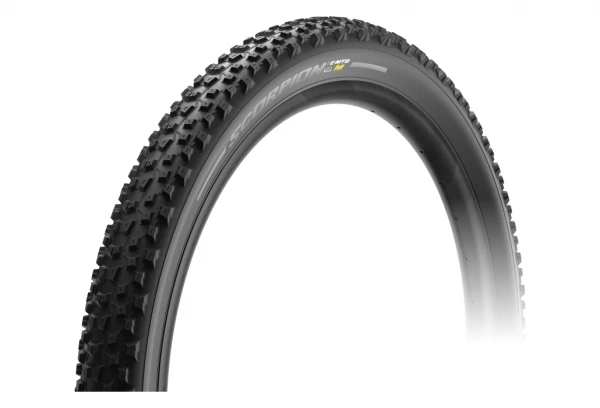 La bande de roulement de Scorpion™ E-MTB M est composée de crampons dont l’espacement et la hauteur ont été étudiés en combinaison avec les caractéristiques mécaniques et physiques de la gomme pour offrir des performances sans compromis dans des conditions variables entre les terrains compacts et inconsistants. L’ajout de nervures spécifiques aide à soutenir les crampons et à favoriser le décollement de la boue dans des conditions humides.