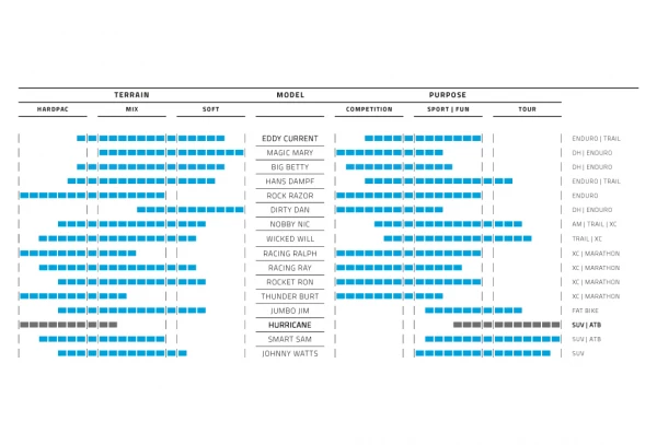 Pneu polyvalent pour les pistes off-road faciles. Le Schwalbe Hurricane présente une bande de roulement moderne et dynamique. C’est un excellent pneu tout terrain, conçu pour les cyclistes qui aiment être rapides sur la route et avoir un accès illimité aux chemins peu exigeants. La bande de roulement est très roulante et silencieuse sur l’asphalte. Des micro-crampons garantissent la sécurité en courbes, tandis que l’épaulement stable offre une adhérence maximale sur les routes forestières et chemins gravillonnés.