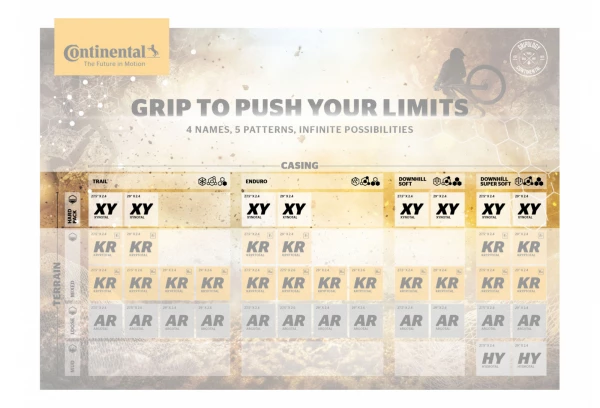 La construction Enduro Casing est constituée de trois couches de matériau de carcasse, sous la bande de roulement, pour la robustesse et la protection contre les perforations. Sur les flancs, deux couches de matériau de carcasse apportent souplesse et adaptabilité, tandis qu’une couche de tissu croisé évite les coupures et les entailles. Comme pour la version Downhill, la version Enduro Casing est dotée de renforts Apex garantissant une plus grande robustesse contre les pincements et un meilleur soutien.