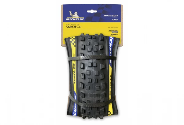 Le Michelin Wild XC Racing Line est le pneu VTT XC Race nouvelle génération, offrant un maximum de grip sur les parcours qui sortent des sentiers battus. Il offre un freinage maximal et une réactivité en virage inspirés des gammes Michelin Wild Enduro. Le mélange de gomme Michelin Gum-X compound maximise le rendement tout en optimisant la traction, tandis que la carcasse Michelin Cross Shield² améliore la protection contre les crevaisons et la résistance de la bande de roulement et des flancs.
