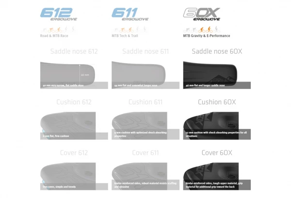Le nez de selle plat et abaissé exerce moins de pression sur les zones sensibles des hommes et des femmes. Pour un soulagement encore plus efficace de la pression, en particulier dans les longues montées techniques, le nez de selle du 6OX est devenu un peu plus large, mais tout aussi plat et avec la plus grande surface possible. Le rembourrage a été conçu pour les besoins spécifiques du VTT électrique avec des propriétés d’amortissement parfaites pour les terrains accidentés hors route. Grâce à ces modifications, la 6OX est la selle idéale pour les montées longues et raides en VTTAE et en même temps, même sur les vélos sans moteur, elle procure un soulagement optimal.