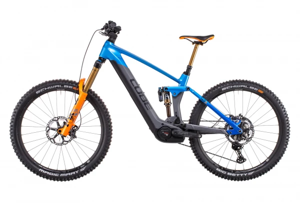 | Pneus | Avant : Schwalbe Magic Mary, Super Trail, Addix Soft, Kevlar, 27.5 x 2.4″ / Arrière : Schwalbe Big Betty, Addix Soft, Super Gravity, Tubeless Easy, 27.5 x 2.4″ |